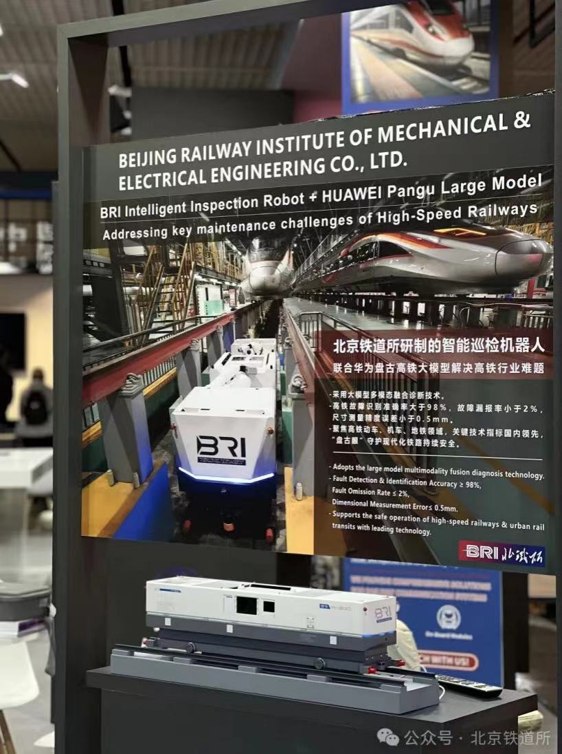北京鐵道所研制的高鐵動(dòng)車(chē)智能巡檢機(jī)器人采用華為盤(pán)古鐵路大模型多模態(tài)融合診斷技術(shù),可實(shí)現(xiàn)對(duì)高鐵動(dòng)車(chē)故障全自動(dòng)智能快速檢測(cè),替代動(dòng)車(chē)組一級(jí)修人工檢修作業(yè),在提高動(dòng)車(chē)組檢修質(zhì)量和檢修效率方面取得了重大突破。高鐵故障識(shí)別準(zhǔn)確率大于98%,故障漏報(bào)率小于2%,尺寸測(cè)量精度誤差小于0.5mm,關(guān)鍵技術(shù)指標(biāo)國(guó)際國(guó)內(nèi)領(lǐng)先。2024年9月19日在上海華為全聯(lián)接大會(huì)上,華為交通智慧化軍團(tuán)Marketing與解決方案銷(xiāo)售部部長(zhǎng)王國(guó)鈺與北京鐵道所輪值總裁熊歆斌博士作為伙伴代表共同發(fā)布智能鐵路一云一網(wǎng)N樞紐解決方案。