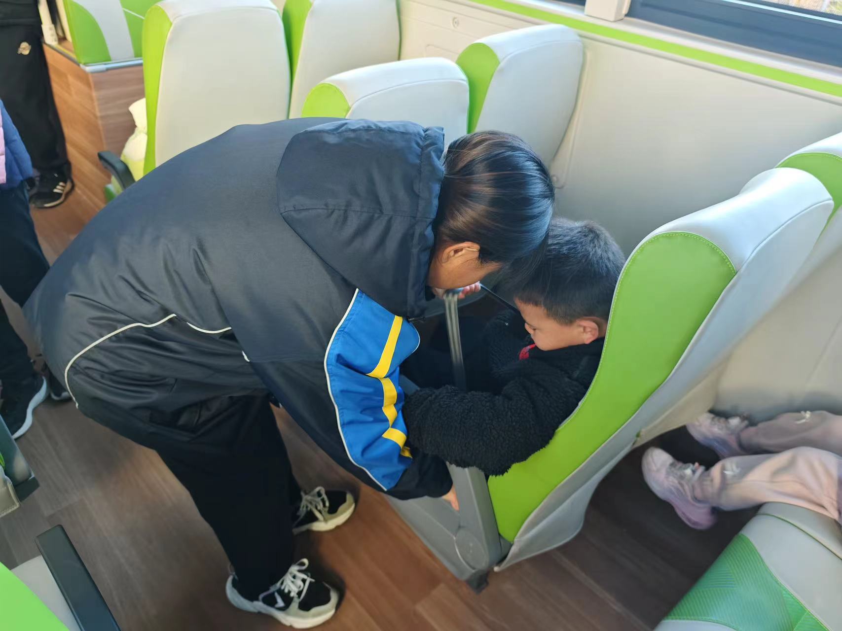 “哇,公交車(chē)開(kāi)進(jìn)了幼兒園。”“司機(jī)叔叔真厲害,能夠開(kāi)公交車(chē)。”一輛通學(xué)公交車(chē)緩緩駛?cè)胗變簣@,小朋友們指著公交車(chē)激動(dòng)地說(shuō)。等公交車(chē)停穩(wěn)后,在確保安全的情況下,小朋友們和老師圍站在公交車(chē)旁,公交工作人員向他們介紹了通學(xué)公交車(chē)的基本構(gòu)造、乘車(chē)規(guī)則以及遇到緊急情況時(shí)的應(yīng)對(duì)措施,還講解了交通信號(hào)燈、斑馬線等交通基礎(chǔ)知識(shí),為小朋友們帶來(lái)了一場(chǎng)生動(dòng)有趣的交通安全知識(shí)講座,小朋友們聚精會(huì)神地聆聽(tīng),通過(guò)互動(dòng)問(wèn)答的方式,激發(fā)了他們的學(xué)習(xí)興趣,加深了對(duì)安全知識(shí)的理解和記憶,現(xiàn)場(chǎng)氣氛熱烈非凡。接著,到了體驗(yàn)乘車(chē)的環(huán)節(jié),小朋友們?cè)诶蠋煹膸ьI(lǐng)下有序排好隊(duì),乘務(wù)員上前主動(dòng)和小朋友們打招呼,引導(dǎo)他們上車(chē)坐好并規(guī)范系好安全帶,“乘車(chē)要嚴(yán)格遵守先下后上的原則。”“車(chē)輛啟動(dòng)后,要坐穩(wěn)扶好。”在司機(jī)師傅和乘務(wù)員的一聲聲叮囑中,全部小朋友都已經(jīng)有序上車(chē)。在車(chē)廂內(nèi),安全員任立華還模擬了一些常見(jiàn)的乘車(chē)場(chǎng)景,如車(chē)輛突然剎車(chē)等緊急情況,告訴大家如何保持冷靜、如何有效應(yīng)對(duì)。小朋友們?cè)趨⑴c中學(xué)習(xí),在實(shí)踐中領(lǐng)悟,對(duì)安全乘坐公交車(chē)有了更深的認(rèn)識(shí)。