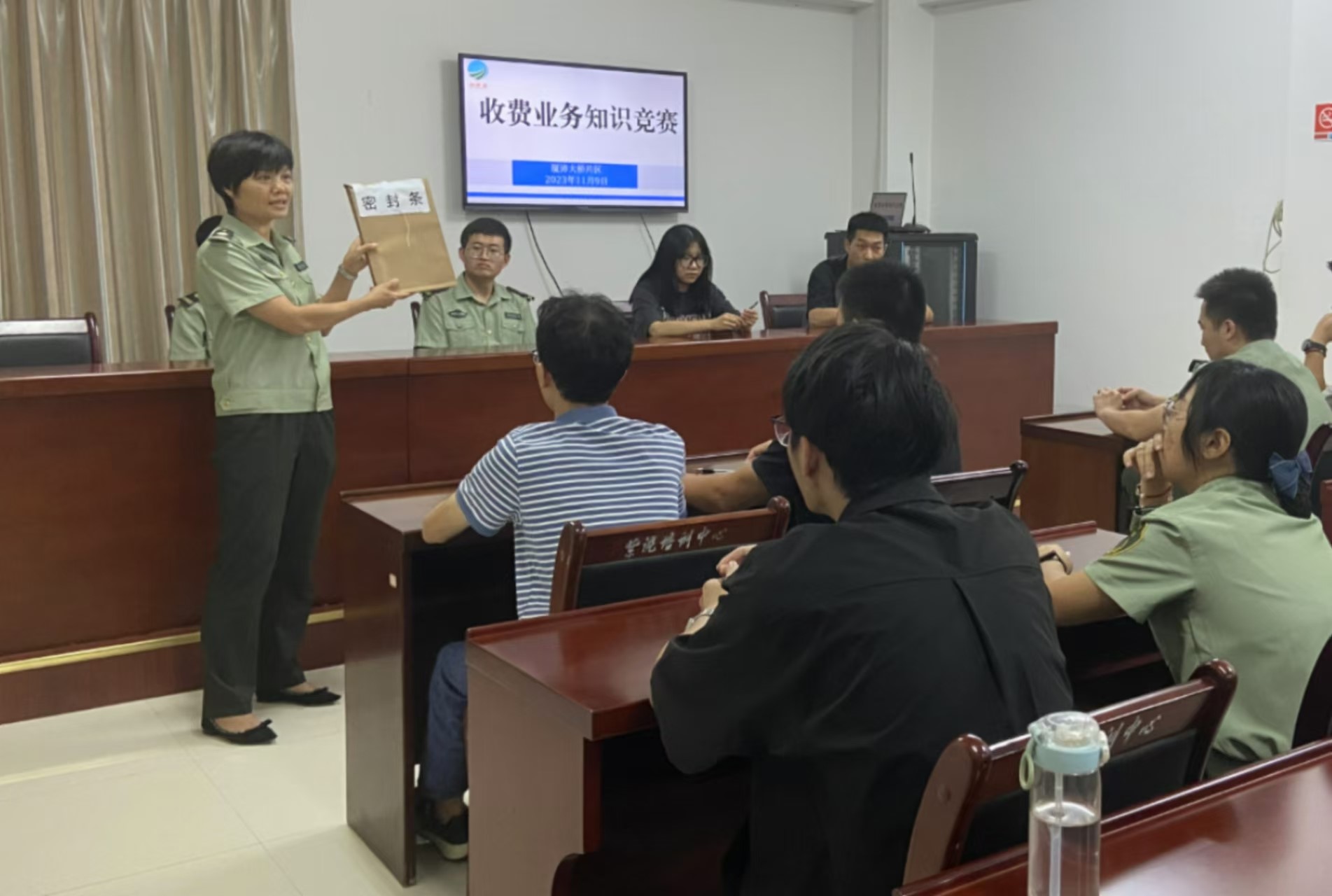 (圖為王勤華正組織班組開展收費(fèi)業(yè)務(wù)知識競賽,提升業(yè)務(wù)服務(wù)技能)