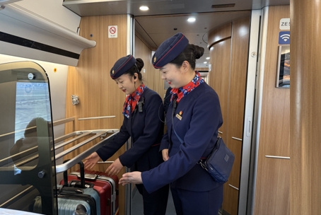 還有一次,一位老年旅客在車廂里不慎弄丟了行李,里面裝著他精心為家人準(zhǔn)備的重要禮物,老人焦急得眼眶泛紅。王小丫見狀,一邊輕聲安慰老人,一邊迅速對講機(jī)呼叫車長和師父,經(jīng)過一番不懈努力,找到了老人的行李。原來是老人記錯了車廂,將行李放到隔壁車廂去了,當(dāng)她將失而復(fù)得的行李交到老人手中時,老人緊緊握住她的手,激動得不停地道謝?粗先巳玑屩刎(fù)的笑容,王小丫心中滿溢著成就感,這份成就感也成為她繼續(xù)前行的強(qiáng)大動力。