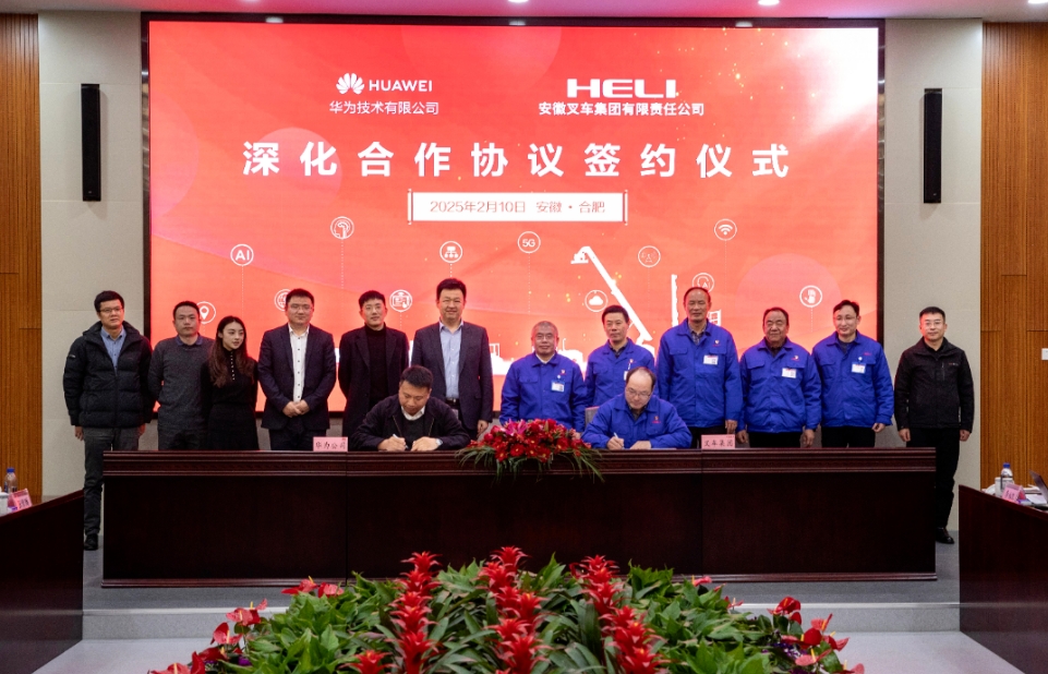安徽叉車集團有限公司(以下稱“叉車集團”)與華為技術(shù)有限公司(以下稱“華為”)舉行深化合作協(xié)議簽約儀式。叉車集團黨委書記、董事長、總經(jīng)理楊安國,副總經(jīng)理薛白,華為制造與大企業(yè)軍團CEO劉超等出席簽約儀式。叉車集團總經(jīng)理助理徐英明和華為安徽政企副總經(jīng)理田響響代表雙方簽約。