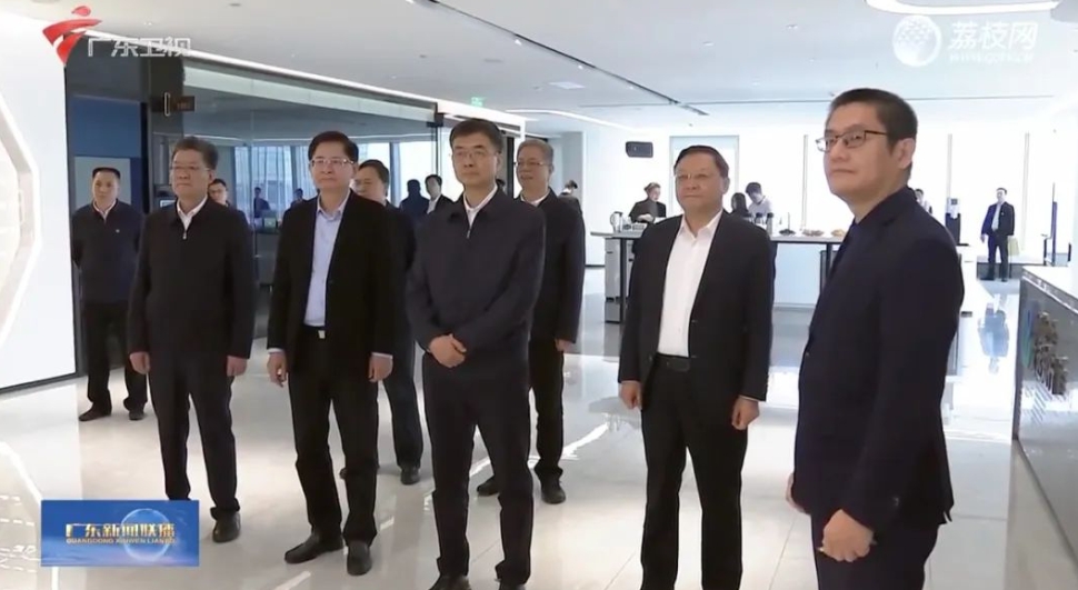 (廣西黨政代表團(tuán)視察文遠(yuǎn)知行。圖中前排左二為廣西壯族自治區(qū)黨委書記陳剛,前排左三為廣東省委副書記、省長王偉中,前排左一為文遠(yuǎn)知行資深副總裁鐘華。素材來源:廣東電視臺)