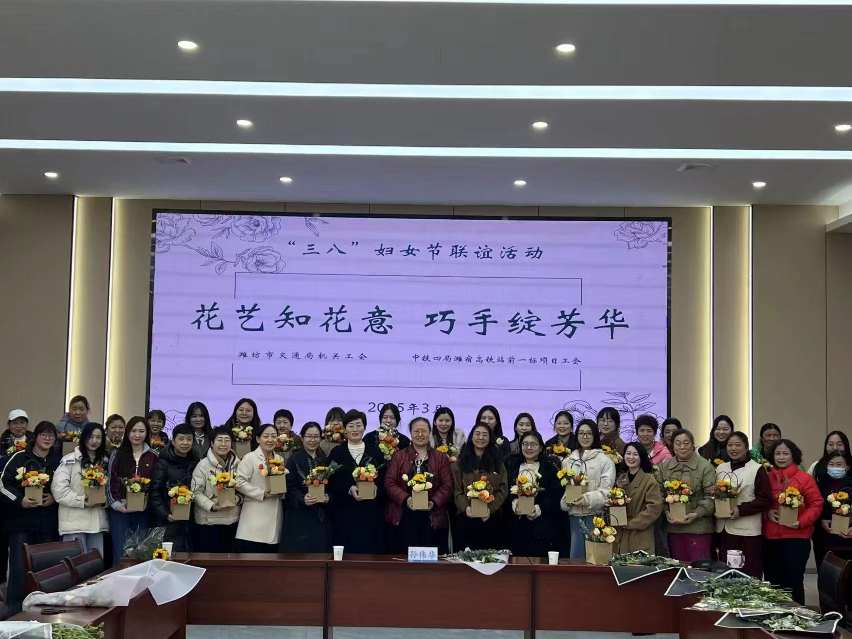 2025年3月7日,中鐵四局濰(坊)宿(遷)高鐵項目工會與濰坊市交通運輸局機關工會聯合開展的“書香花香競芬芳,交通巾幗綻芳華”主題活動在中鐵四局濰宿高鐵站前一標項目濰坊制梁場順利舉行。雙方近50余名女職工參加活動。