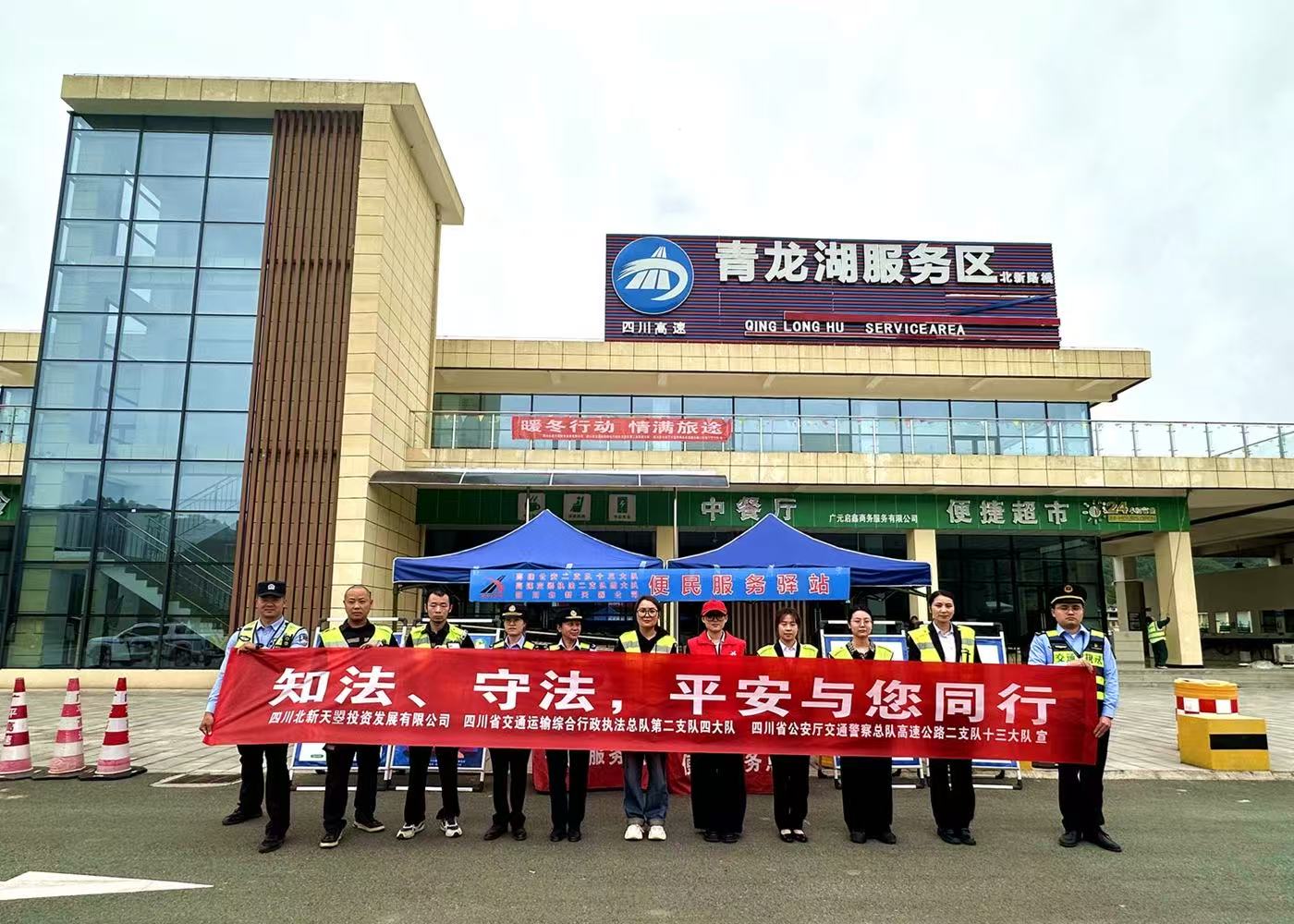 法到您身邊——在服務(wù)區(qū)便民服務(wù)點(diǎn)懸掛橫幅,利用電子屏滾動(dòng)播放活動(dòng)主題及與群眾生產(chǎn)生活密切相關(guān)的交通法、消防法、食品安全法等內(nèi)容,讓過(guò)往旅客一進(jìn)入服務(wù)區(qū)就感受到濃厚的法律宣傳氛圍。
