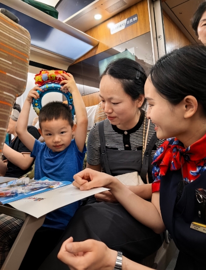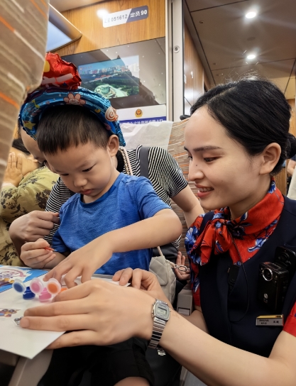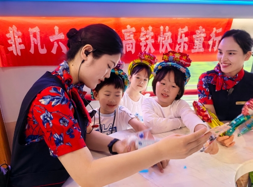 童心飛揚(yáng),在這個(gè)屬于每個(gè)小朋友的大日子里, 高鐵一隊(duì)京廣3組在列車上,為小朋友們打造一個(gè)充滿童趣和歡樂的旅行乘車氛圍,安排一場有趣的小活動(dòng)、送上一份精美的小禮物,讓小朋友們在列車上度過一個(gè)難忘的六一兒童節(jié);(dòng)中收獲的不僅僅是一份禮物,更是一份快樂,一份回憶,一個(gè)難忘的非凡六一。