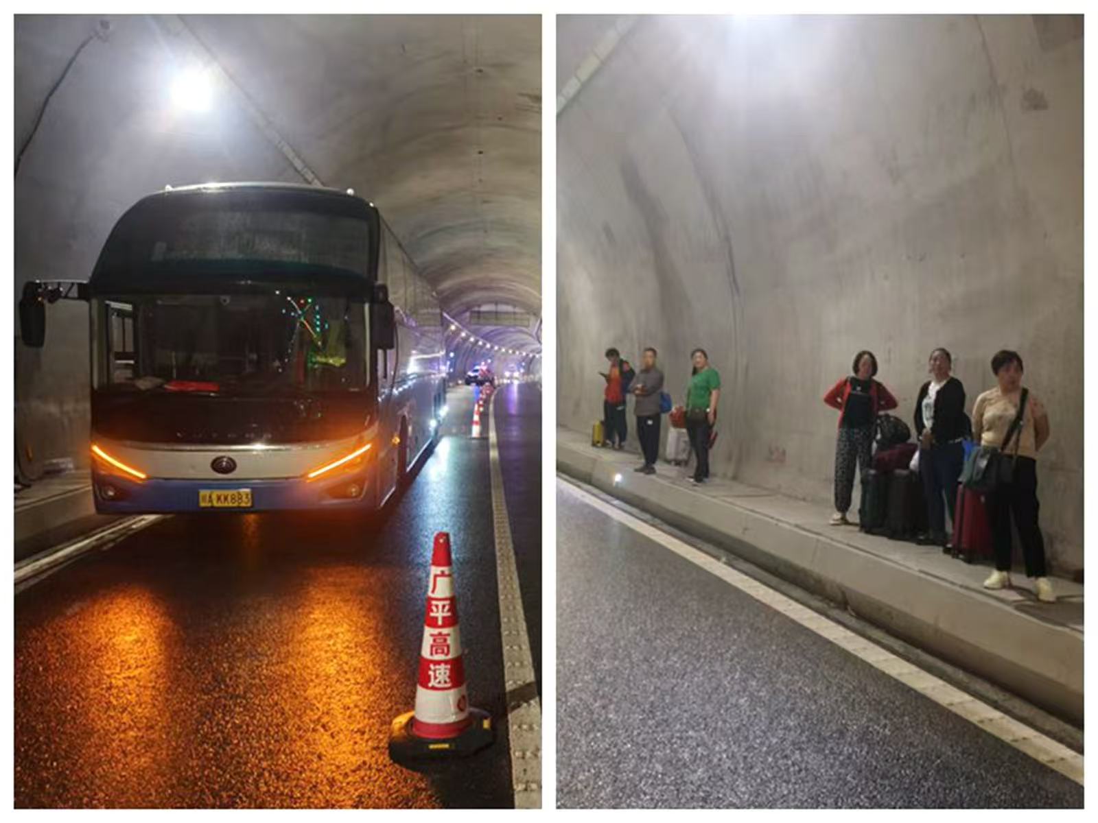 當(dāng)日15時(shí)25分,一輛長(zhǎng)途客車(chē)在駛?cè)氩駧X里隧道約400米處突發(fā)故障拋錨,停在了貨車(chē)道,司機(jī)在開(kāi)啟危險(xiǎn)報(bào)警閃光燈后撥打了廣平高速救援電話和所屬公司電話(要求調(diào)派轉(zhuǎn)運(yùn)車(chē)輛)。