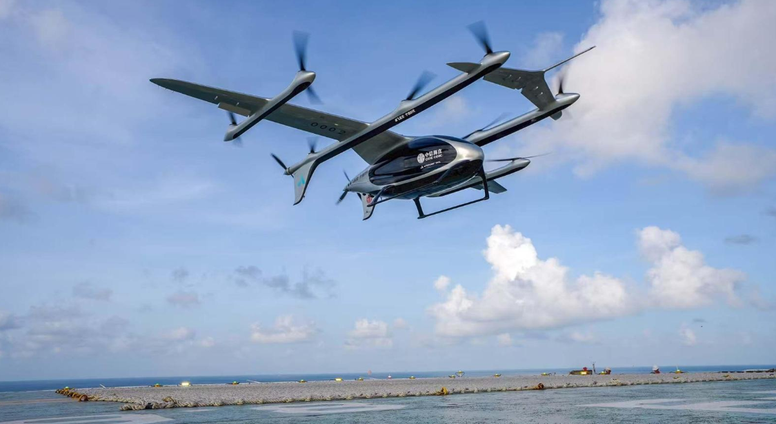 此次試飛由中國海油聯(lián)合中信海直、峰飛航空共同實(shí)施。執(zhí)飛機(jī)型為我國自主研發(fā)的全球首款獲得型號合格證、生產(chǎn)許可證和單機(jī)適航證的2噸級eVTOL“凱瑞鷗”。它裝載新鮮水果和緊急藥品等物資,從深圳陸地起降點(diǎn)起飛,經(jīng)過58分鐘的跨海域飛行,降落在距離深圳海岸線150公里的惠州19-3平臺,成功完成了運(yùn)輸任務(wù)。