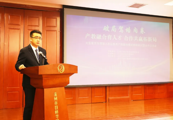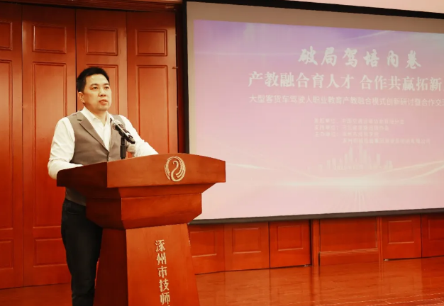 涿州市委常委、政府副市長(zhǎng)郭衍游出席會(huì)議并講話(huà),肯定校企雙方打造的大型客貨車(chē)駕駛?cè)寺殬I(yè)教育項(xiàng)目階段性成果,祝賀系列合作達(dá)成,強(qiáng)調(diào)地方政府將全方位、全鏈條支持項(xiàng)目發(fā)展,助力打造區(qū)域產(chǎn)教融合標(biāo)桿。
