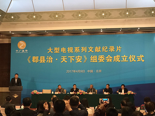 2017年4月9日,大型電視系列文獻紀錄片《郡縣治·天下安》高峰論壇暨組委會成立新聞發(fā)布會在釣魚臺國賓館隆重舉行。全國人大原副委員長許嘉璐發(fā)來賀信。中國作家協(xié)會全國委員會委員、黨組成員鄭伯農(nóng),國家廣電總局紀檢監(jiān)察局原局長王玉軍、中央電視臺軍事部原主任劉效禮,國務院參事室新聞顧問趙德潤,《共和國日記》網(wǎng)編輯委員會主任周振明,等應邀出席。來自首都新聞界各大媒體的記者、相關企業(yè)負責人、全國部分縣市相關領導以及社會各界人士100余人參加了會議。