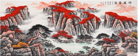 NO.5 鴻運(yùn)當(dāng)頭山水畫,明亮跳躍的色彩,感覺墻面瞬間就變的有色彩,家也變得溫馨起來。
