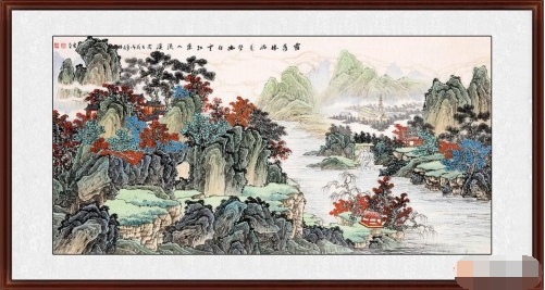 在李林宏這幅畫作中,藝術(shù)魅力隨感而發(fā)、隨筆而出,筆隨心動、情景交融。有寫生的素材、有創(chuàng)作的意識、有把握布局的才智、有駕馭巨制的能力,這是修養(yǎng)、功力、技法、認(rèn)識與自然生活撞擊所迸發(fā)出的結(jié)晶。此幅作品畫面清新、色彩明亮,山川挺拔、層林盡染,水流激湍、云蒸霞蔚,或恬淡靜雅蒼翠欲滴,或渾厚華滋春雨初霽。