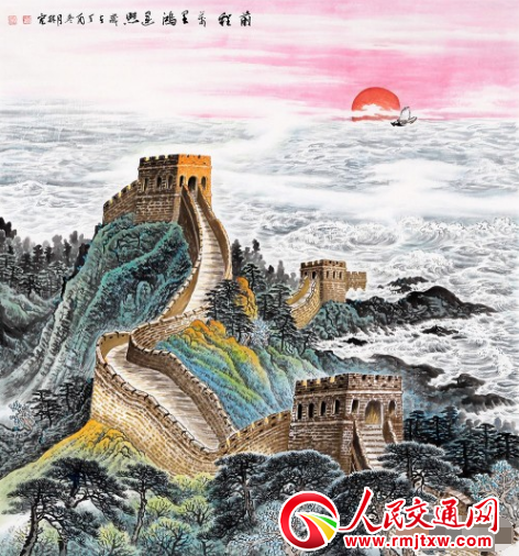 李林宏先生的這幅《前程萬里鴻運照》長城山水畫,其熟練老道的筆墨技巧,構(gòu)圖,氣韻,用線,敷色,與通常的山水畫相比別出新意,格調(diào)雅致,透過畫作仿似能夠看到雄關(guān)漫道、故國情懷的氤氳之息。
