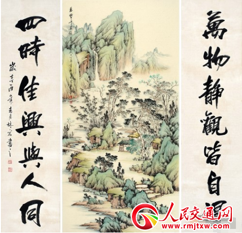 這幅《福地安居圖》潺潺流水云霧纏繞,有民宅靜謐安然,氣勢磅礴的全景山水,峰巒層疊,植被豐茂,有草木微染秋色,其間居住的人家,得山水清汽,度悠哉人生。這幅畫是以綠色為主色彩,給人一中的按自然的辛勤和生機(jī),使人感到輕松愉快。尤其是其中風(fēng)水寓意極佳!堪稱完美!