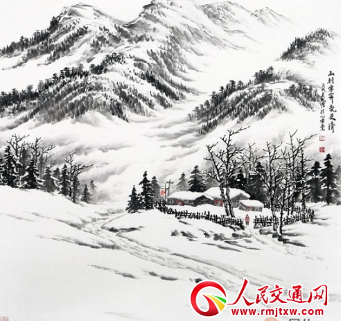 吳大愷最新力作雪景山水畫《風雪無阻意志堅》來源:易從網(wǎng)