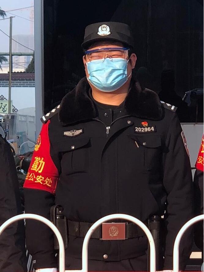 在抗擊疫情阻擊戰(zhàn)中,張明同志帶頭落實上級“疫情就是命令、防控就是責(zé)任”總要求,主動放棄了回家調(diào)休,1月24日農(nóng)歷大年三十將孩子托付給父母后,返回工作崗位開展工作。疫情期間,他吃住在所里,連續(xù)21天沒有回過一次家。張明的兒子年僅9歲,家中還有患病的父母,他的突然去世給家人和同事留下了無盡的悲痛和哀思。圖為疫情防控期間張明同志在站崗執(zhí)勤。