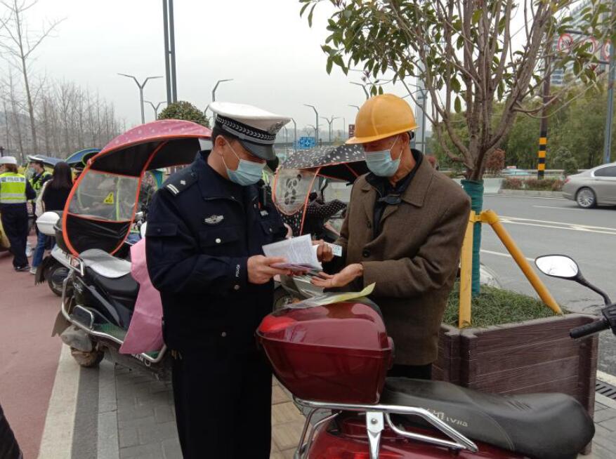 “同志,請(qǐng)出示您的電動(dòng)車相關(guān)證件!如果沒(méi)有,請(qǐng)盡快辦理。未登記上牌的電動(dòng)車,不能上路行駛!”3月18日,在張家界市永定城區(qū)街道一個(gè)交警臨時(shí)設(shè)置的檢查卡點(diǎn)上,執(zhí)勤民警督促一位電動(dòng)車駕駛?cè)吮M快到交警大隊(duì)車輛管理所辦理電動(dòng)車登記上牌事宜。