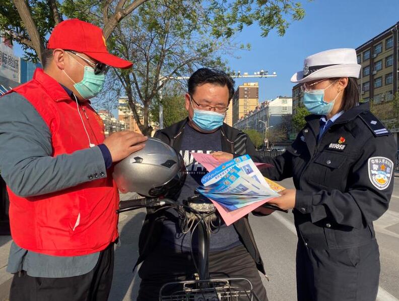 活動(dòng)中,志愿者們按照預(yù)先分組,有序開展文明交通志愿服務(wù),在府前花園和皇行家園門口,志愿者們嚴(yán)把社區(qū)“出口關(guān)”,向廣大社區(qū)居民宣傳“一盔一帶”相關(guān)安全知識,提醒騎行摩托車、電動(dòng)自行車駕駛?cè)艘宕靼踩^盔,防止發(fā)生意外時(shí)有效保護(hù)頭部,提醒汽車駕乘人員要自覺養(yǎng)成上車系好安全帶的良好習(xí)慣;在城區(qū)縣醫(yī)院、公安局路口,志愿者們各盡其責(zé),積極勸導(dǎo)行人、非機(jī)動(dòng)車不要闖紅燈、越線、逆行、不按車道行駛等交通違法行為,告知其各類違法行為的危害及后果,同時(shí)向廣大交通參與者廣泛宣傳“一盔一帶”,勸導(dǎo)摩托車、電動(dòng)車自行車出行時(shí)要正確佩戴安全頭盔,注意交通安全。
