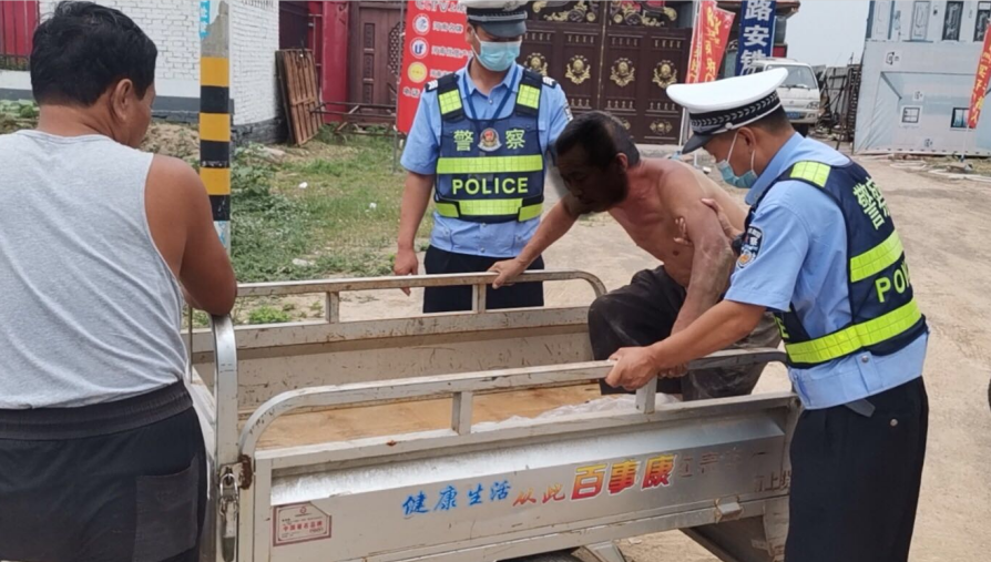 2020年6月15日下午,正在道路巡查值守的中隊民警王振周、王利廣等人,忽然發(fā)現(xiàn)一名喝多了的老者,不時走走停停,還脫掉鞋子、甩掉衣服直接躺在路邊。當時106國道正是車來車往、交通流量大的時間段,醉酒者在車流中橫沖直撞十分危險,幾位民警急忙把醉酒老人請到安全區(qū),詢問半天該醉酒老人也沒說明白家是哪個村的,只是糊里糊涂的要回家。