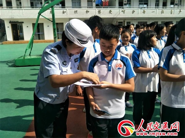在宣傳活動(dòng)中,大隊(duì)宣傳人員首先向?qū)W生發(fā)放《校園道路交通安全注意事項(xiàng)》、《中小學(xué)生出行安全知識(shí)》、《致學(xué)校和學(xué)生家長(zhǎng)的一封信》等宣傳資料,接著宣傳民警賈勇向?qū)W校師生通報(bào)了暑假期間發(fā)生在轄區(qū)道路“7.26”“8.03”涉及學(xué)生重大死亡事故教訓(xùn),并對(duì)事故成因進(jìn)行分析講說(shuō),警示學(xué)生們要加強(qiáng)自我保護(hù)意識(shí),自覺(jué)摒棄不良交通陋習(xí),積極做到文明、安全出行。隨后,宣傳民警賈勇結(jié)合文博中學(xué)周邊道路交通情況和安全形勢(shì)以及學(xué)生們放學(xué)出行的特點(diǎn),重點(diǎn)講解如何安全騎車、乘車以及遇到突發(fā)事件如何保護(hù)自己人身安全等措施,并教育學(xué)生們嚴(yán)格遵守交通安全法規(guī),做到不橫穿馬路、不在馬路上追逐車輛,要求學(xué)生們牢記交通安全知識(shí)。最后,為了能與學(xué)生更好的進(jìn)行互動(dòng)、宣傳教育,達(dá)到此行的目的,在宣傳民警賈勇的解說(shuō)下,大隊(duì)宣傳人員組織現(xiàn)場(chǎng)的學(xué)生學(xué)習(xí)了交通手勢(shì)操。學(xué)生們通過(guò)手勢(shì)操的學(xué)習(xí)過(guò)程,使自己了解了交通手勢(shì)操的作用、意義,有利于幫助自己今后的出行安全。