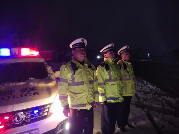 在轄區(qū)大坡陡坡彎道路段、臨崖路段、重點濕滑路段等重要部位,加強警車巡邏,及時提醒過往車輛減速慢行,安全通過。雪越下越大,警車上的積雪也越堆越厚,閃爍的警燈穿透雪幕,為群眾歸家路點亮方向。在國省道、快速路等車流量較大的路段,執(zhí)勤交警站在路面上指揮疏導(dǎo),引導(dǎo)車輛保持安全車距,降低車速。交警們的鞋子濕透了,褲腿沾滿了冰凌,但他們依然無怨無悔,堅守在路上。在城關(guān)鎮(zhèn)趙坡村委門口路段上,一輛正在上坡的轎車突然原地打滑,車尾直往邊溝甩。正在該路段執(zhí)勤的交警見狀迅速上前,喊停司機,然后幫助推車,直到轎車順利離開。