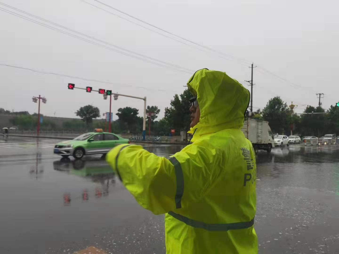 他們24小時“舍小家、為大家”,用自己的青春和汗水值守、巡邏疏導(dǎo)交通,公安交警用“暴雨不停警察不撤崗,洪水不退警車燈長紅”的恒心,始終護(hù)衛(wèi)每名群眾和車輛安全通過風(fēng)雨,盡最大努力保障人民群眾汛期生命安全。