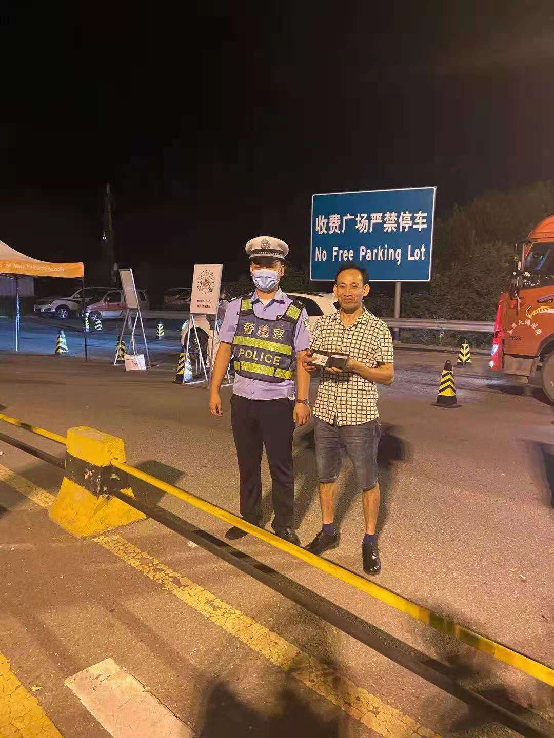 十幾分鐘后的凌晨24時(shí)許,失主唐師傅終于駕車風(fēng)風(fēng)火火的返回高速口,經(jīng)過認(rèn)真核對確認(rèn),步建龍把錢包和證件交回唐師傅手中。拿著失而復(fù)得的錢包,唐師傅的高興之情溢于言表,他告訴民警,他是四川省資陽市大貨司機(jī),今天晚上駕駛貨車剛好路過這里時(shí),曾在附近吃飯休息,肯定是再次上高速的時(shí)候,因?yàn)橹壁s路,自己不小心把錢包滑落在地上,幸虧是被執(zhí)勤民警撿到,不然麻煩就大了。