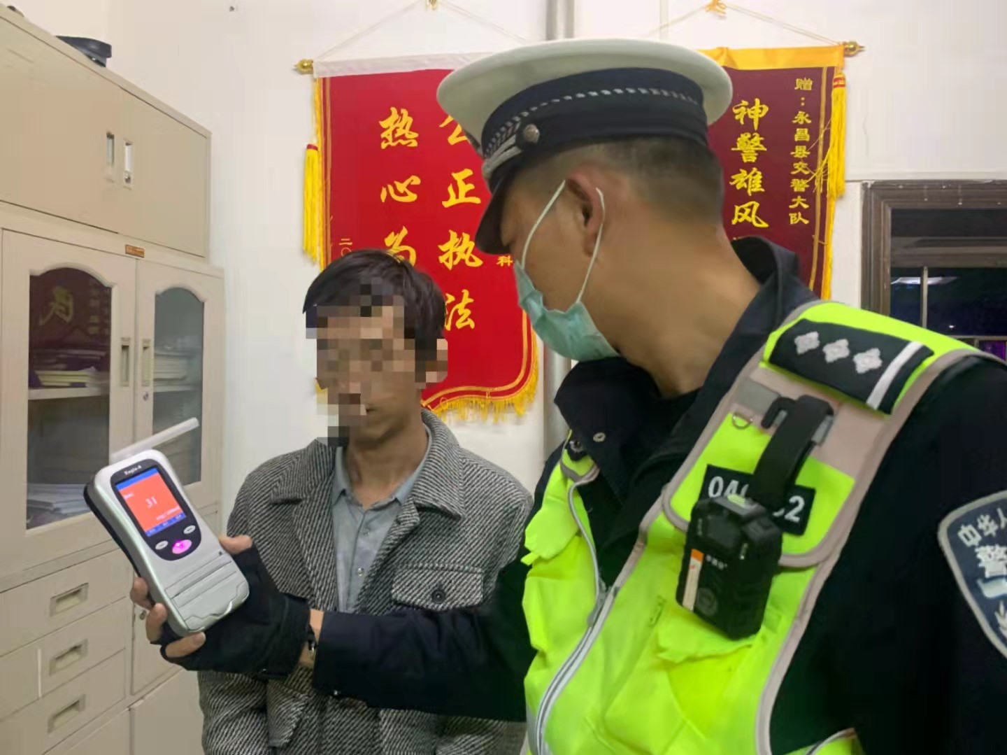 中秋節(jié)當(dāng)晚,金昌市公安局交警支隊(duì)驪靬高速公路大隊(duì)執(zhí)勤民警在永昌收費(fèi)站開(kāi)展酒駕夜查行動(dòng),22時(shí)30分許,一輛號(hào)牌為貴FMPXXX的黑色的小型普通客車(chē)行駛至執(zhí)勤點(diǎn)進(jìn)行例行檢查時(shí),該車(chē)駕駛員身上散發(fā)出較濃的酒味,執(zhí)勤民警立即用酒精篩查儀對(duì)該駕駛員進(jìn)行酒精測(cè)試,測(cè)試結(jié)果顯示駕駛員為酒后駕駛。隨后執(zhí)勤民警對(duì)駕駛員進(jìn)行呼氣式酒精檢測(cè),酒精含量為31mg/100ml,屬于飲酒后駕駛機(jī)動(dòng)車(chē)。