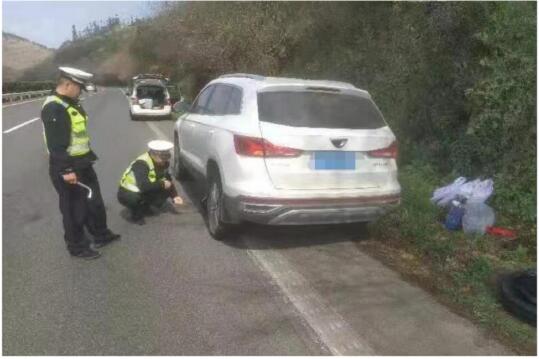 近日,保山市公安局交警支隊保龍一大隊民警巡邏至保龍高速公路龍陵至保山方向大官市路段時,發(fā)現(xiàn)一輛號牌為云A牌照的小型越野車停在應急車道內,車旁還有一人正焦急地走來走去。