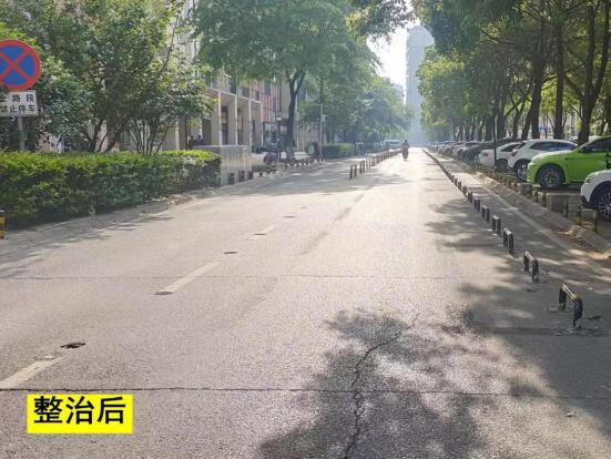 “車輛違停治理,治標(biāo)更要治本。”為徹底解決金華小路的車輛違停和堵車問題,洪山區(qū)交通大隊(duì)成立違停治理專班,在多次摸排道路實(shí)際情況、聽取周邊社區(qū)居民意見后,決定采用硬隔離的辦法。專班民警積極協(xié)調(diào)獅子山街道、區(qū)城管部門,在違停道路右側(cè)增設(shè)了一排U形隔離樁,兩側(cè)人行道增設(shè)隔離馬蹄樁,道路連接處增設(shè)圓形石樁,從“物防”上根除違停的空間,并協(xié)調(diào)周邊多家社區(qū)物業(yè),相互開放小區(qū)內(nèi)部停車場,完善停車指引標(biāo)示,引導(dǎo)車輛有序停放。同時(shí),通過社區(qū)網(wǎng)格微信群發(fā)布停車提示,加強(qiáng)宣傳引導(dǎo),全面優(yōu)化小區(qū)周邊停車秩序管理。經(jīng)過一系列整治,徹底解決了金華小路車輛違停造堵的“頑疾”。