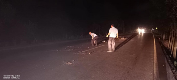 6月22日晚上,道縣公安局祥霖鋪中隊民警在轄區(qū)路段執(zhí)勤時,及時清理路面灑落的磚頭,消除了道路交通隱患。