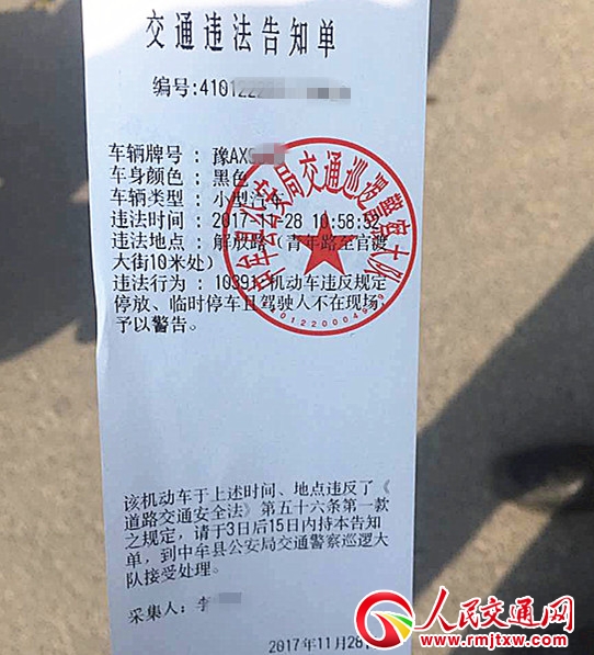 人民交通網(wǎng)通訊員胡云峰,張玉明報(bào)道:中牟交警從今天(2017年11月28日)開始,在全縣推行“特殊”情況下違法停車,警告零罰款,當(dāng)天貼出五十余張警告罰單,受到了廣大群眾的理解和支持。