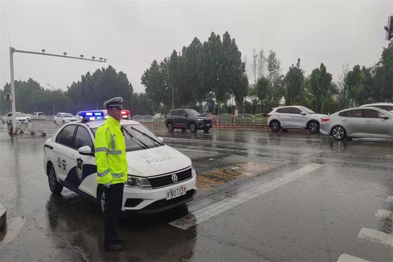 一場大雨驟然而降,商丘公安交警針對轄區(qū)道路交通實際情況,采用定點和巡邏相結(jié)合的方式,加大對高速公路、國省道、景區(qū)路段周邊路段等重點道路交通的管控力度。風(fēng)雨中,執(zhí)勤民警輔警加強(qiáng)指揮疏導(dǎo),加大路面巡邏管控力度,防止交通擁堵和交通事故的發(fā)生,確保雨天道路安全暢通、有序。同時,提醒過往駕駛?cè)擞晏炻访鏉窕,減速慢行,保持安全車距,注意交通安全;引導(dǎo)過往駕駛?cè)瞬灰岂{、醉駕、超員、超載、疲勞駕駛、違法載人、隨意停車、變更車道、強(qiáng)行加塞等交通違法陋習(xí),保持高壓嚴(yán)管態(tài)勢,發(fā)現(xiàn)違法行為及時制止,時刻把人民群眾生命安全放在首位。發(fā)現(xiàn)擁堵路段及時進(jìn)行人工指揮疏導(dǎo),快速處置因車輛刮碰、機(jī)動車熄火、路段積水交通受阻等突發(fā)事件,在各個路段隨處可見那些風(fēng)雨中疏堵保暢的“熒光綠”。