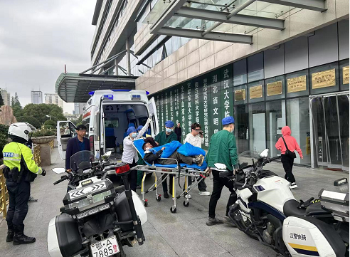 5月22日7時(shí)38分,正在三環(huán)線處理交通事故的漢警快騎隊(duì)員賀亞輝接到大隊(duì)指揮中心派警,稱一輛救護(hù)車從江夏向市區(qū)方向駛來,救護(hù)車上有一名重傷患者急需到解放軍中部戰(zhàn)區(qū)總醫(yī)院救治。接到指令后,賀亞輝迅速處理完交通事故,隨后立即駕駛警用摩托車趕至三環(huán)線融創(chuàng)智谷路口,等待救護(hù)車的到來。