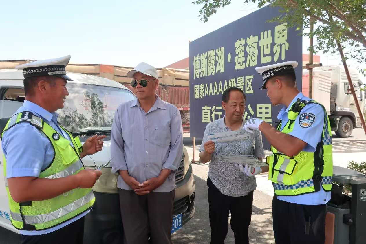 5月19日是第15個“中國旅游日”,主題為“錦繡山河、美好旅程”。為全方位做好旅游交通安全管理和服務(wù)工作,做精做優(yōu)旅游警務(wù),筑牢旅游交通“安全網(wǎng)”,護航旅客“平安路”,5月17日,庫爾勒市公安局交警大隊塔什店中隊主動與博湖縣公安局交警大隊西海中隊聯(lián)系對接,再次開展聯(lián)勤聯(lián)動,組織執(zhí)勤民警輔警在通往蓮海世界、白鷺洲等博斯騰湖(也稱為“西海”)5AAAAA景區(qū)精品旅游線路——塔什店至揚水站公路博斯騰湖5AAAAA景區(qū)游客服務(wù)中心雙方轄區(qū)道路交會處強化聯(lián)動協(xié)作,創(chuàng)新推出以“宣傳有廣度、執(zhí)勤有力度、服務(wù)有溫度、快處有速度”的旅游警務(wù)模式,聯(lián)合開展巡邏防控、疏堵保暢、隱患排查、秩序維護、交通疏導(dǎo)、安全提示、暖心服務(wù)等工作的同時,庫爾勒市公安局交警大隊塔什店中隊民警輔警還來到人氣爆棚的塔什店鎮(zhèn)回水灣度假村,向游客車輛駕駛?cè)撕蛷V大游客開展“游新疆 平安行”交通安全主題宣傳活動,實現(xiàn)旅游警務(wù)“警”準(zhǔn)護航,確保旅游線路“景”然有序。