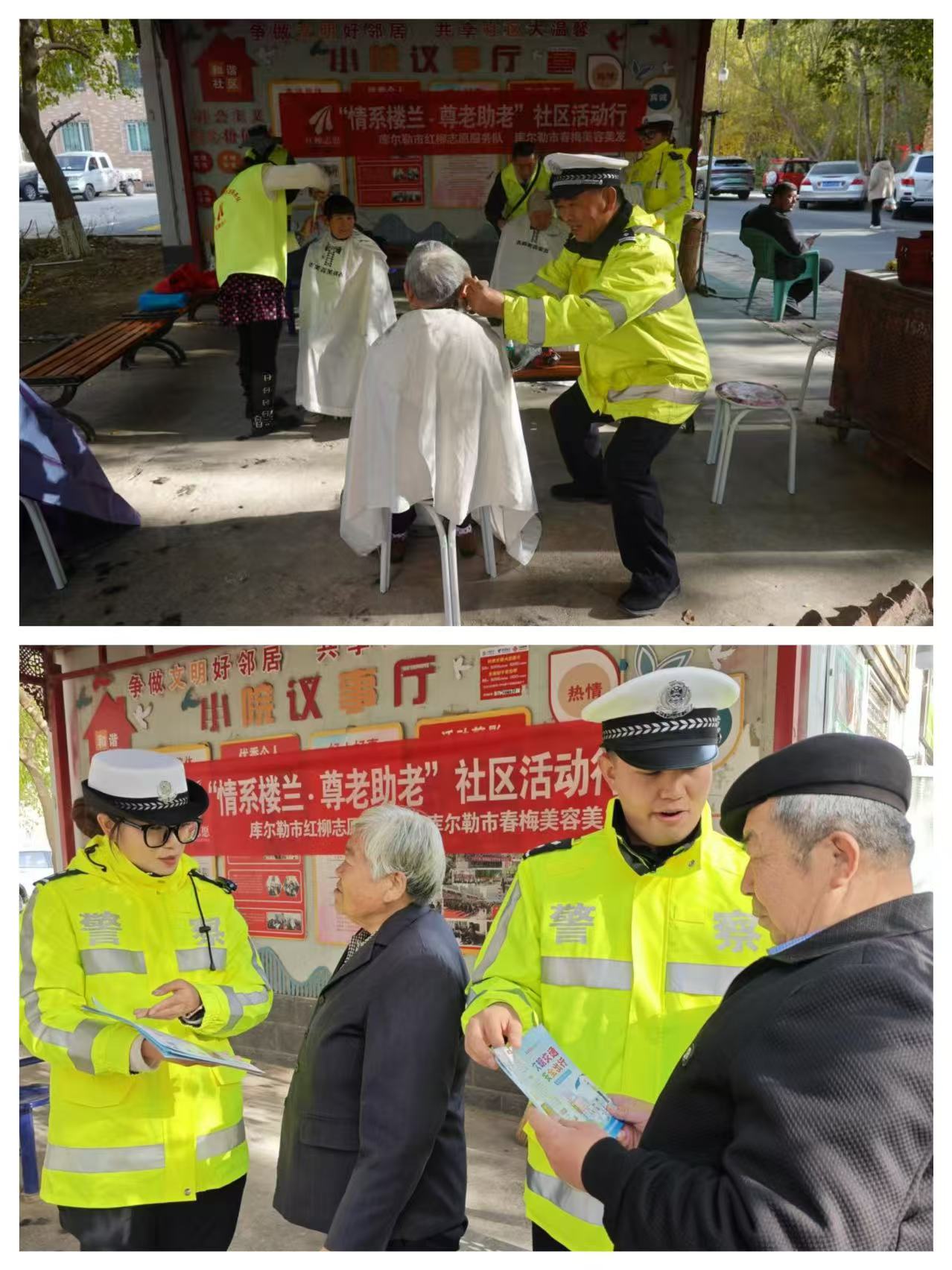金秋送爽、歲歲重陽,愛滿重陽、情暖桑榆。“熒光綠”用行動(dòng),守護(hù)最美“夕陽紅”。在重陽節(jié)來臨之際,為弘揚(yáng)中華民族尊老敬老的傳統(tǒng)美德,營造尊老、愛老、助老的社會(huì)氛圍,進(jìn)一步提高老年人交通安全意識(shí)、文明出行意識(shí)和自我防護(hù)能力,把“知危險(xiǎn)會(huì)避險(xiǎn)、安全文明出行”真正落到實(shí)處,預(yù)防和減少涉及老年人的交通事故發(fā)生。10月27日,新疆庫爾勒市公安局交通管理大隊(duì)文明交通志愿者服務(wù)隊(duì)與庫爾勒市紅柳志愿者服務(wù)隊(duì)深入到庫爾勒市建設(shè)街道上恰其社區(qū),共同參加社區(qū)舉辦的“情暖重陽·愛滿鄰里”主題活動(dòng),警民志愿者為老年人送服務(wù)、送祝福、送安全,除開展義務(wù)理發(fā)外,還送上了精心準(zhǔn)備的交通安全“大禮包”,給老年人帶來了穩(wěn)穩(wěn)的幸福感和滿滿的安全感。