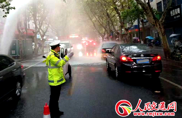 人民交通網(wǎng)訊 11月7日早上,常德城區(qū)建設路一消防栓被撞后柱狀水流噴涌而出,路面很快積水,影響過往車輛、行人正常通行。常德交警支隊直屬一大隊執(zhí)勤警員發(fā)現(xiàn)后,立即報告有關部門、設置警戒,指揮疏導交通,確保交通暢通安全。