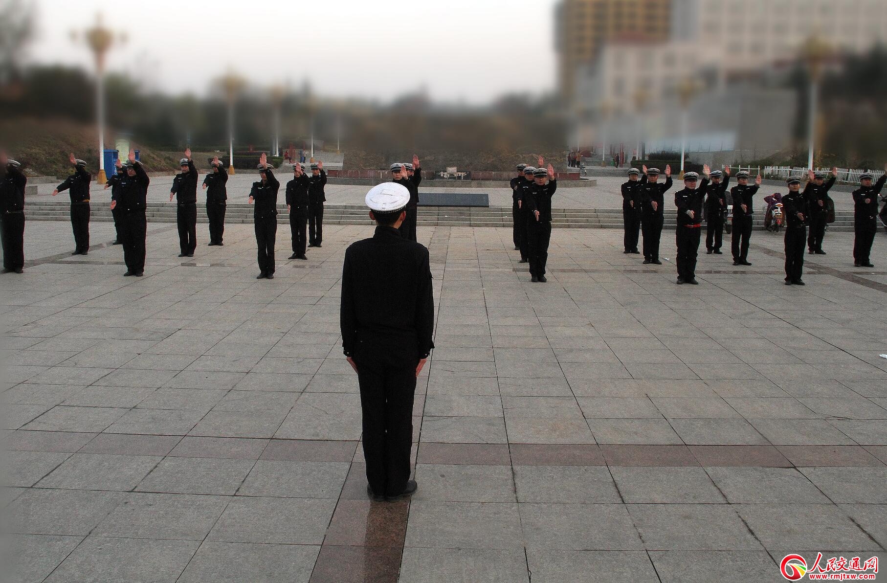 圖為11月13日7時許,臨猗交警大隊城區(qū)中隊組織全體輔警,在峨眉公園廣場練習正步走,做交通指揮手勢操,扎實學習各項業(yè)務(wù)技能。