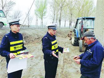 春耕農(nóng)忙時(shí)節(jié),燈塔市交警大隊(duì)組織民警深入到公路兩側(cè)的田間地頭開展交通安全知識宣傳活動(dòng)。民警用通俗易懂的語言向群眾講解交通安全知識,并向他們發(fā)放交通安全宣傳手冊和交通安全知識光盤。