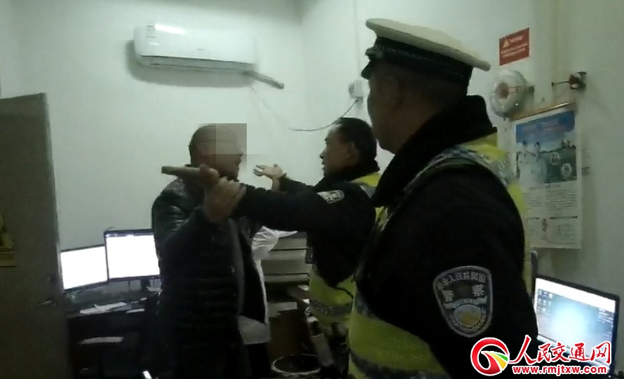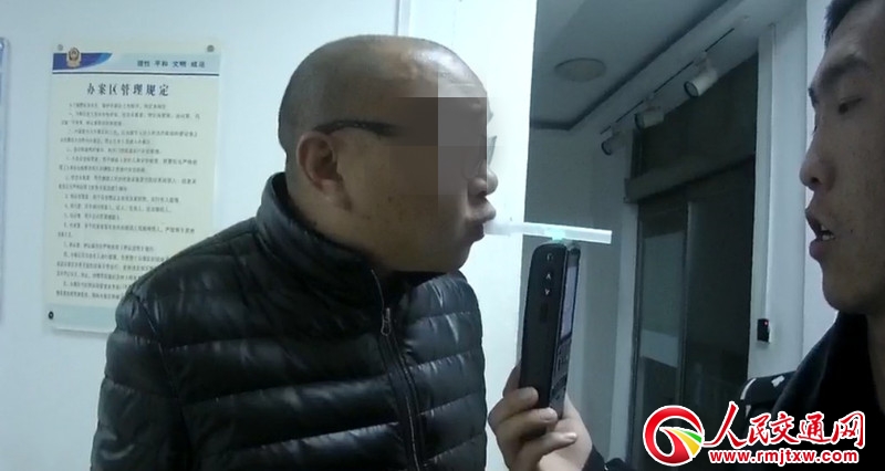 在大隊辦案區(qū)用呼氣式酒精檢測儀對該司機進行檢測后,其檢測結(jié)果是94.5mg/100ml,涉嫌醉酒駕駛。于是民警將其帶到醫(yī)院準(zhǔn)備抽血送檢,但該駕駛?cè)饲榫w激動,說什么也不配合抽血,還抓住民警的手大呼:你打我吧!你打我吧!我就是不讓抽血...