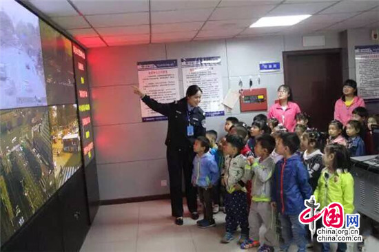 碑林大隊(duì)民警作為“導(dǎo)游”,帶領(lǐng)小朋友到辦案中心、指揮中心等小朋友們從未見過的地方進(jìn)行參觀,還講解了大隊(duì)“鐵騎”摩托車,交警單警裝備等,孩子不時發(fā)出贊嘆的呼聲。指揮中心輔警李曉玫非常親切而熱心的為小朋友們演示了指揮中心的多功能屏幕,并熟練的調(diào)取了幾名小朋友家附近的監(jiān)控,用不一樣的視角,讓小朋友看到了自己熟悉的路段,小朋友們大呼神奇。