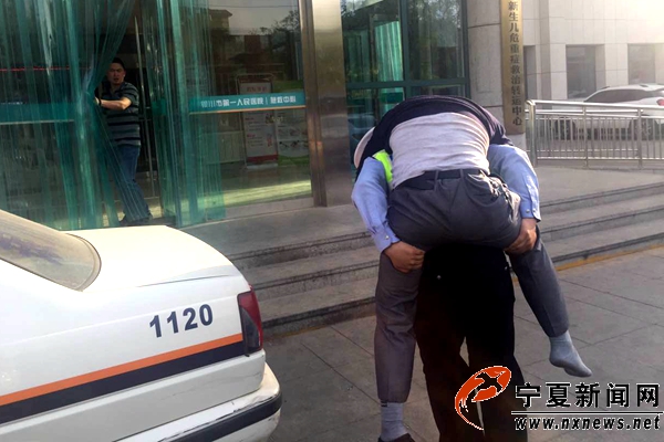 5月1日下午5時(shí)50分,興慶區(qū)交警一代地民警代治中和協(xié)警胡多才出警后巡邏至鼓樓北街正義巷路口時(shí),遇市民求助稱(chēng)家人酒精過(guò)敏暈倒在路邊,由于一家人是從中寧來(lái)銀川玩,不知道最近的醫(yī)院在哪,希望交警指路。兩人迅速趕到現(xiàn)場(chǎng),發(fā)現(xiàn)男子已經(jīng)躺在地上不省人事,而身邊只有慌亂的妻子和年邁的父母,代治中毫不猶豫將男子背上警車(chē),送往醫(yī)院。
