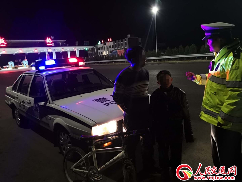 1月30日23時許,一對夫婦駕車從曲靖南收費站向陸良方向駛?cè)?當行駛至曲陸高速公路曲靖至陸良方向28公里處時與一輛自行車“擦肩而過”,驚嚇之余,夫婦發(fā)現(xiàn):這輛自行車的騎行者竟是一名男孩,由于高速公路不能調(diào)頭,夫婦立即向曲陸高速公路交巡警大隊報警。接警后,民警舒強立即駕車沿路尋人。為擴大尋找范圍,指揮分中心民、輔警立即利用視頻監(jiān)控進行巡查,期望通過監(jiān)控發(fā)現(xiàn)男孩身影。