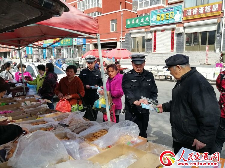 人民交通河北訊(記者常玉坤 通訊員李忠勇 畢博文)3月19日上午,河北省井陘縣吳家窯農村集市來了一支身穿警服的特殊趕集小分隊,他們既不是來擺攤賣貨的,又不是選購物品的,而是搞交通安全宣傳的,當地群眾一眼就認出了他們——井陘縣公安交警大隊宣傳科的民警們。