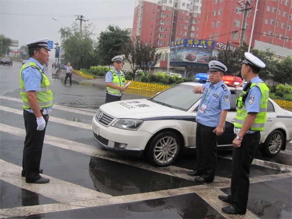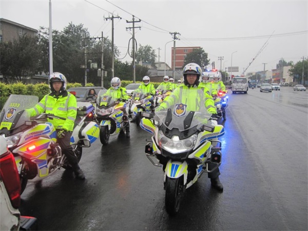 9月11日早晨6時,該大隊全體民警和輔警冒著瀝瀝秋雨,按照預(yù)案,各就各位,上路執(zhí)勤,身上穿的警服和皮鞋被雨水濕透了,都全然不顧。為彌補井陘警力不足的問題,石家莊市交管局特派出70余名騎警前來支援,進行道路巡邏。