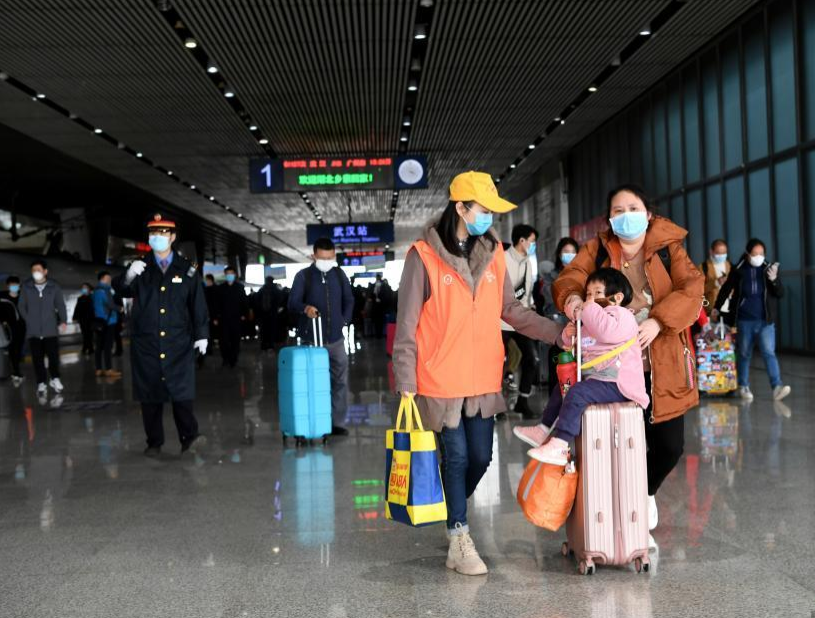 抵達(dá)武漢的旅客。