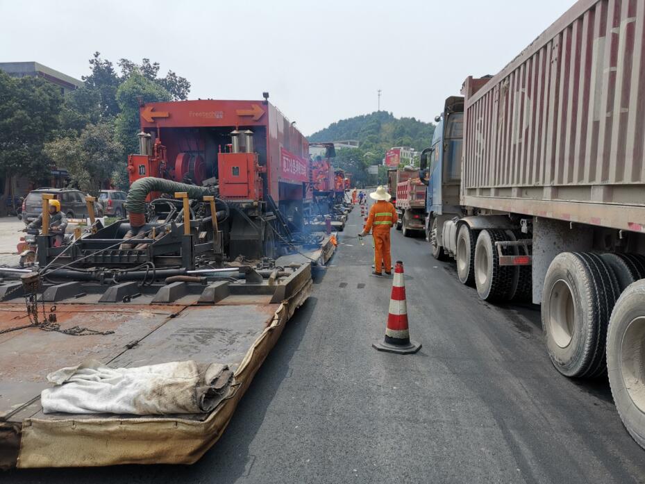 據(jù)悉,該項(xiàng)目采用是就地?zé)嵩偕夹g(shù)能夠使原先舊路面材料100%就地再生利用。熱再生施工不需要挖掘清理運(yùn)走舊路面渣料,也不用圍擋封路長(zhǎng)時(shí)間施工,在五個(gè)大型加熱設(shè)備的同步運(yùn)行下完成加熱、翻松、加瀝青、加新瀝青砼料、復(fù)拌、攤鋪、整平等工作,攤鋪壓實(shí)后很快便能恢復(fù)交通;施工速度快(4-6m/min),周期短,施工采用流水動(dòng)態(tài)作業(yè),工序簡(jiǎn)單,符合循環(huán)經(jīng)濟(jì)要求,也是貫徹了綠色發(fā)展理念,施工過(guò)程無(wú)灰塵、噪音小,同時(shí)該項(xiàng)目也是贛州市國(guó)省干線(xiàn)公路首次使用就地?zé)嵩偕夹g(shù),也是一次新型再生技術(shù)的應(yīng)用推廣。