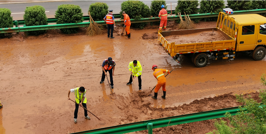 災(zāi)情就是命令,保暢就是責任。6月28日,湖北交投鄂西北高速公路運營管理有限公司所轄麻安高速安麻向K239+50處因暴雨造成泥石流災(zāi)害,該公司領(lǐng)導董全國、許文紅聞訊后,第一時間趕赴現(xiàn)場指揮搶險疏通,用最短時間搶通道路,恢復車輛正常通行。