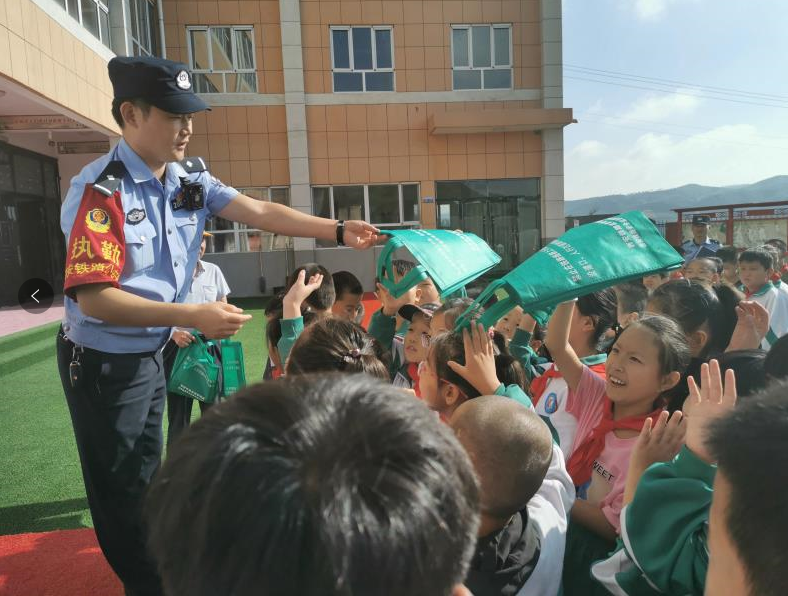 活動(dòng)中,民警還帶領(lǐng)學(xué)生們進(jìn)行宣誓爭(zhēng)做鐵路衛(wèi)士,同時(shí)以“小手拉大手”專題,組織學(xué)生和家長(zhǎng)共同學(xué)習(xí),并通過(guò)發(fā)放宣傳資料、宣傳畫冊(cè)、印有鐵路安全的環(huán)保袋及學(xué)習(xí)文具的形式,提升和加深家長(zhǎng)和學(xué)生對(duì)鐵路安全知識(shí)和安全教育的認(rèn)知。