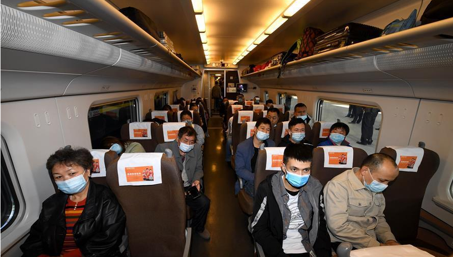 10月11日,乘客在烏魯木齊至西安北D2708次動車組列車上。 當(dāng)日,新疆烏魯木齊至陜西西安方向首趟直達(dá)動車開行,全程2354公里,運行時間13小時22分。據(jù)介紹,這是蘭新高鐵運營6年來開行的第二趟出疆方向動車組列車,烏魯木齊至西安實現(xiàn)了朝發(fā)夕至。