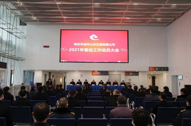 2021年春運是從元月28日開始至3月8日結(jié)束,為期40天。1月26日,淮安公交公司在高鐵東站召開了2021年春運工作動員大會,市交通控股公司副總經(jīng)理、公交公司黨委書記、董事長莊德軍,公交公司黨委副書記、總經(jīng)理孫智敏,各分管領(lǐng)導(dǎo),部門和分公司負(fù)責(zé)人、員工代表等近60人參加會議。會議由公交公司董事范紅祥主持。